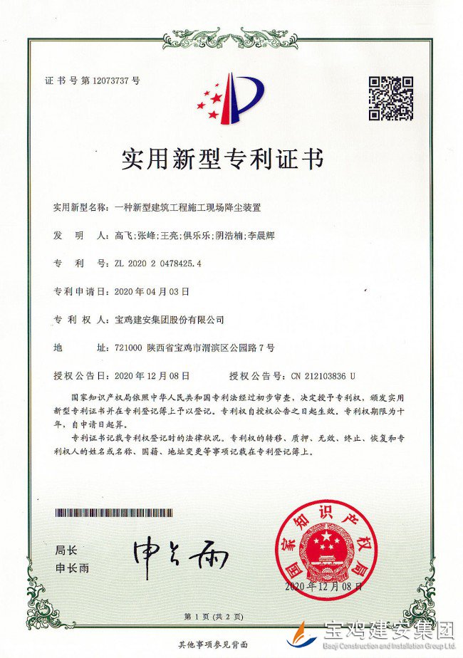 一種新型建筑工程施工現(xiàn)場降塵裝置實用新型專利
